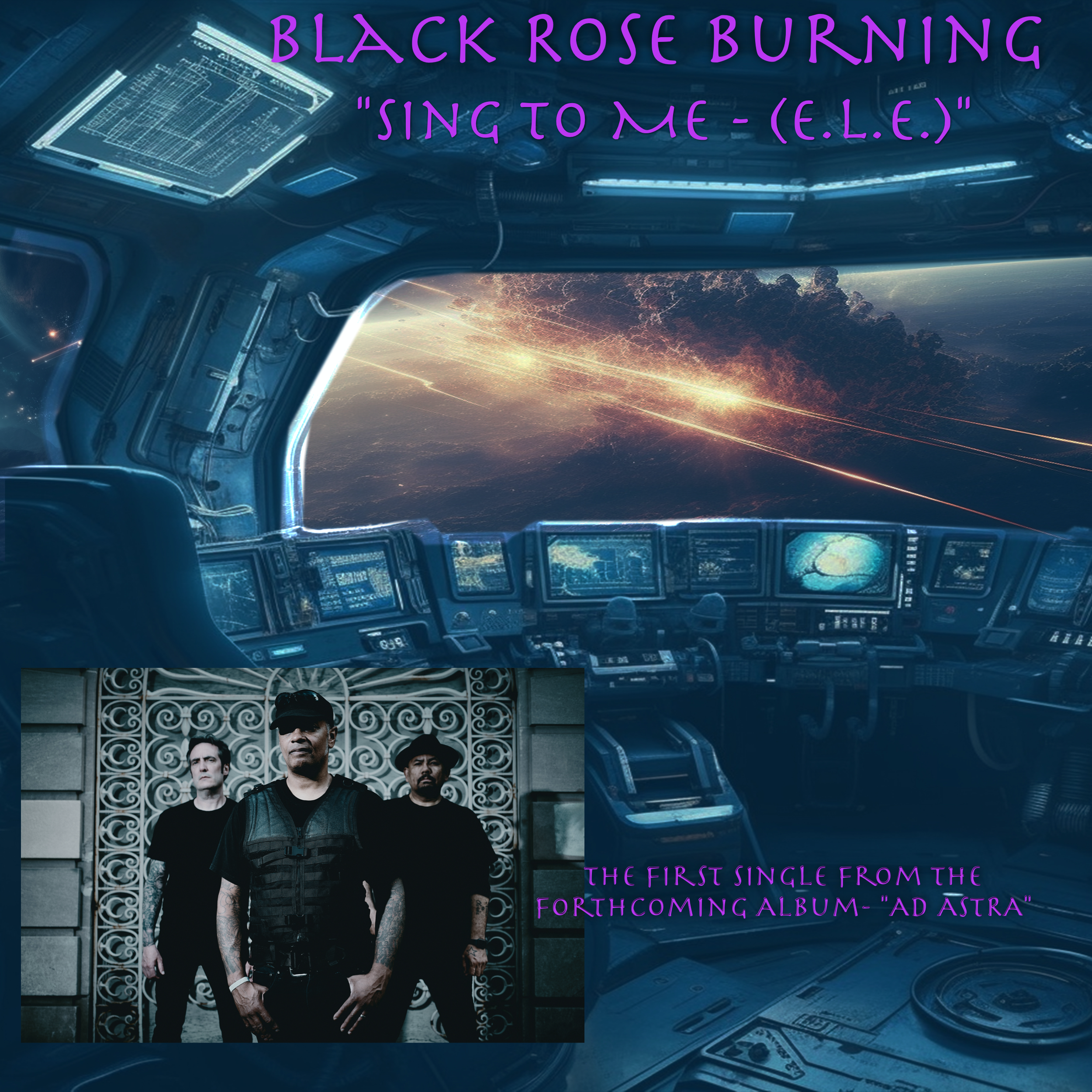 We are delighted to bring you a nice slice of post-punk gothy goodness in the form of a new single from New York’s’ Black Rose Burning. George Grant (bass/vocals/keys), Luis Infantas (drums) and Frank Morin (guitars), are on the verge of dropping their brand new album Ad Astra, and “Sing To Me (E.L.E.)” is the first single, released on the 23rd of June.